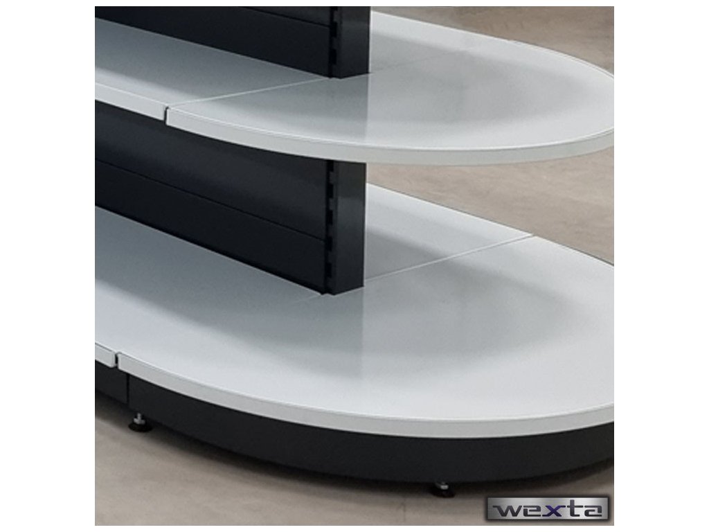 Pro kompletní sestavení půlkruhového zakončení je nutné objednat 2 kusy tohoto prvku. Čela soklu půlkruhu zajišťují plynulé zakončení spodní části regálu a zároveň slouží jako ochranné okopové lišty, které chrání regál před mechanickým poškozením.