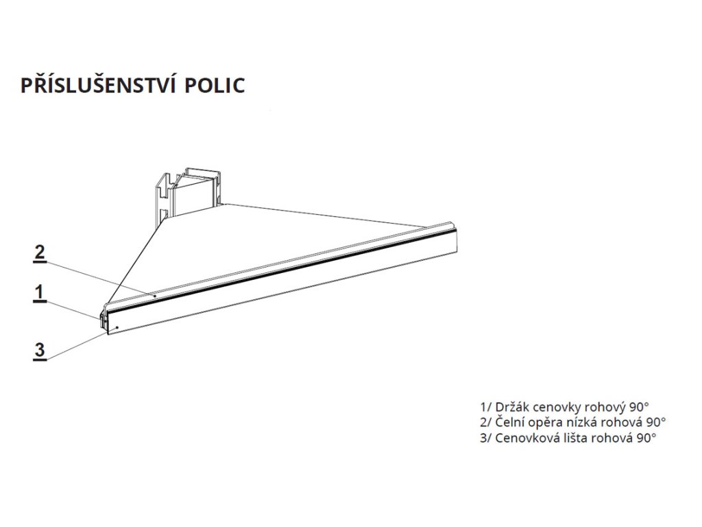 Příslušenství police: | Cenovková lišta rohová 90° |