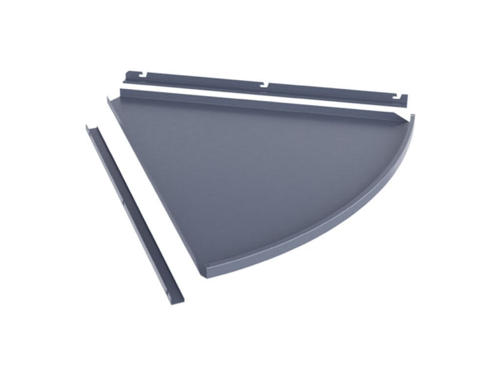 Deska půlkruhového zastřešení 650x620 mm regálového systému SU5 je kovový prvek určený k nasunutí do nosníků zastřešení, při ukončení oboustranného regálu půlkruhem. Proti vypadnutí desky se instaluje čelo zastřešení.