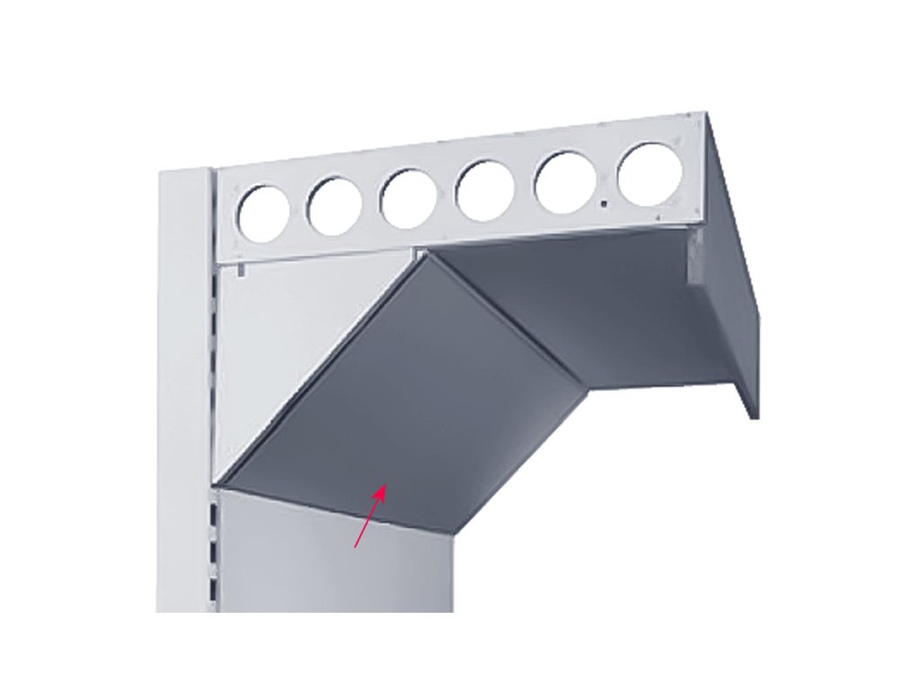 Deska zastřešení lomená 625 mm regálového systému SU5 je dvoudílný kovový prvek určený k nasunutí do nosníků zastřešení. Lomená deska je pouze pro rovné regálové moduly a umožňuje nalepení zrcadla lomeného zastřešení na prodejní regál SU5.