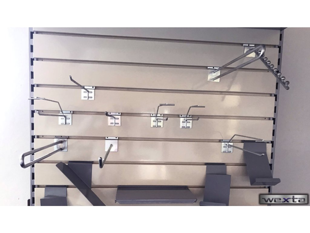 Dvojháčky se jednoduše zavěšují do otvorů v zadních kazetových panelech a umožňují flexibilní uspořádání zboží dle potřeb prodejny.