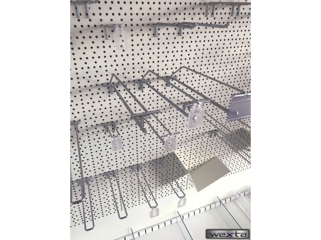Jednoháček s hrazdou 200 mm pro regálový systém SU5 je praktický svařenec z kvalitního ocelového drátu o průměru 6 mm, určený pro přehledné zavěšení zboží v regálových modulech. Díky integrované hrazdě umožňuje zároveň umístění cenovky typu P, čímž usnadňuje označování produktů přímo na prodejní ploše. Jednoduché zavěšení na děrované zadní panely zajišťuje rychlou montáž a flexibilní uspořádání sortimentu.