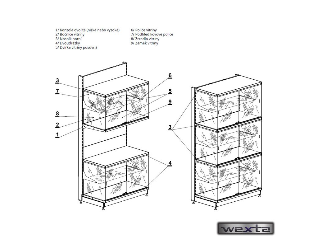 - možnost vložení bočnic polic, vitrín a zásobníků