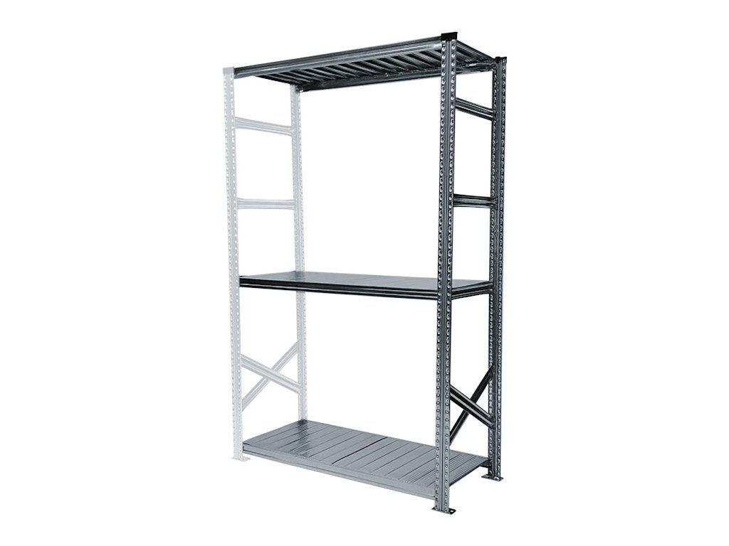 Kovový policový regál, 1972x600x500 mm, 3 police, přídavný
