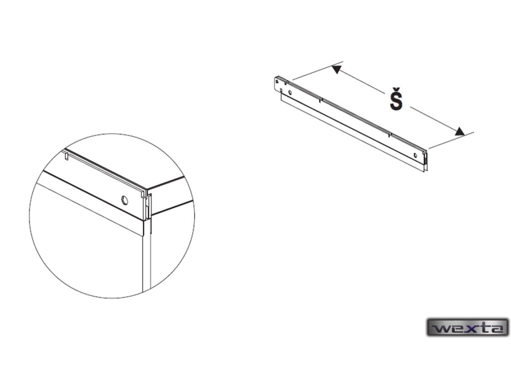 Nosník horní 500 mm regálového systému SU5 je speciální prvek, který po uložení na bočnici zásobníku nebo bočnici vitríny umožňuje usazení police s vysokou dvoudážkou a pro regálové zásobníky se zásuvkovými vložkami umožňuje usazení horní kovové police na modulu prodejního regálu SU5.