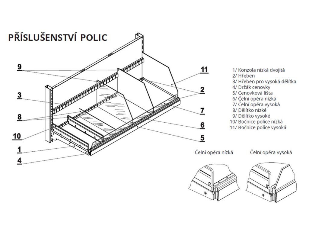 - možnost použití čelní opěry, cenovkové lišty, hřebene a dělítka