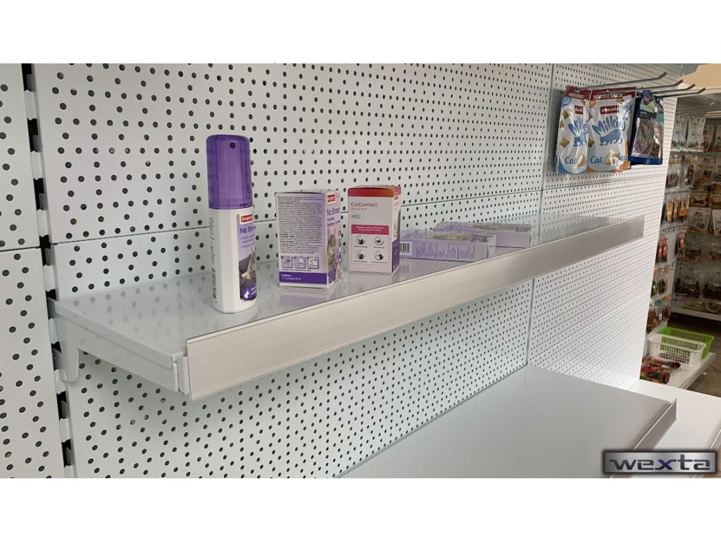 Kovová police regálového systému SU5-ELEGANT je kvalitní a pevná úložná plocha vhodná do prodejny a obchodů. Na přední straně má připravené otvory pro držák cenovky, do kterého lze vložit čelní opěru, cenovkovou lištu, hřeben i dělítko. Díky tomu je zboží vždy přehledně oddělené a uspořádané.