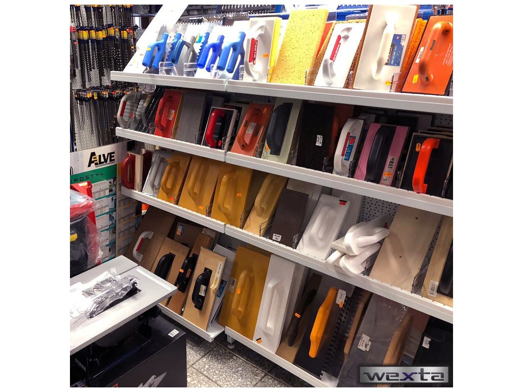 Police je vyrobena z odolného kovu a díky modulárnímu řešení nabízí variabilní kombinace – úložná plocha o šířce 600, 700 nebo 800 mm vzniká spojením menších polic o šířce 300 a 400 mm. Tento regálový systém poskytuje maximální flexibilitu při vybavení prodejní plochy.