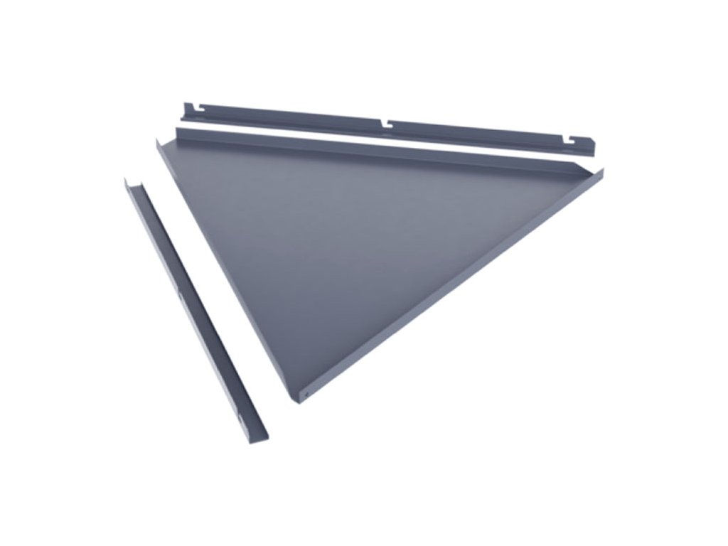 Police zastřešení univerzální (1/3) regálového systému SU5 je kovová úložná plocha určena k uložení na nosníky zastřešení. Tyto univerzální police se používají pro konstrukci lichoběžníkového i půlkruhového ukončení oboustranného regálu.