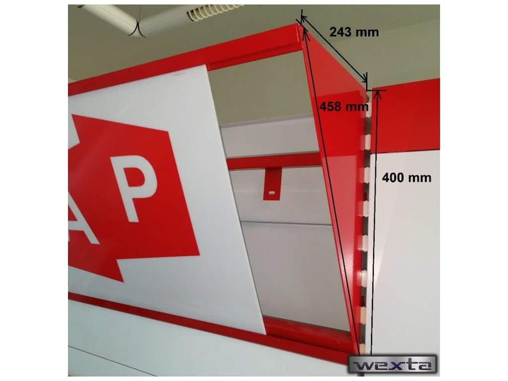 Reklamní panel s čirým plexisklem je určen pro umístění do horní části prodejního regálu, kde efektivně slouží k označení kategorií, zviditelnění značek nebo propagaci akčních nabídek. Díky průhlednému čelnímu plexi je vložený obsah (leták, grafika, sdělení) dobře čitelný, zároveň chráněný proti poškození a jednoduše vyměnitelný. Panel je určen k montáži do horní části regálové sestavy a nahrazuje zadní panel 1330x400 mm. Je plně kompatibilní s běžně používanými regálovým systémem SU5.