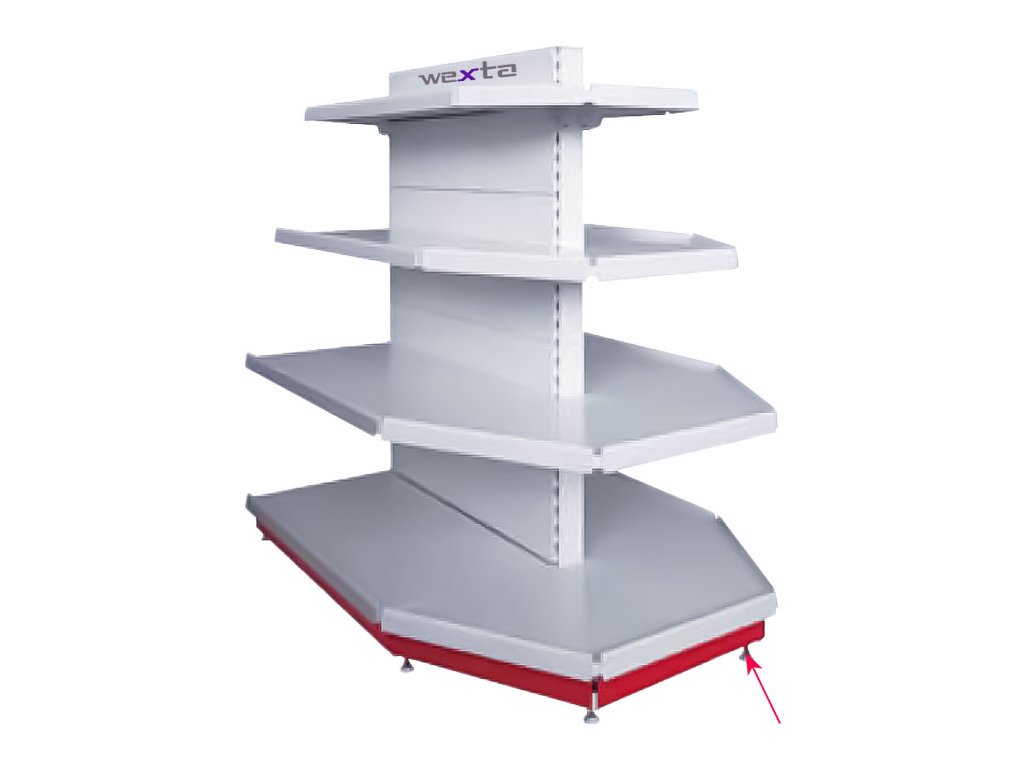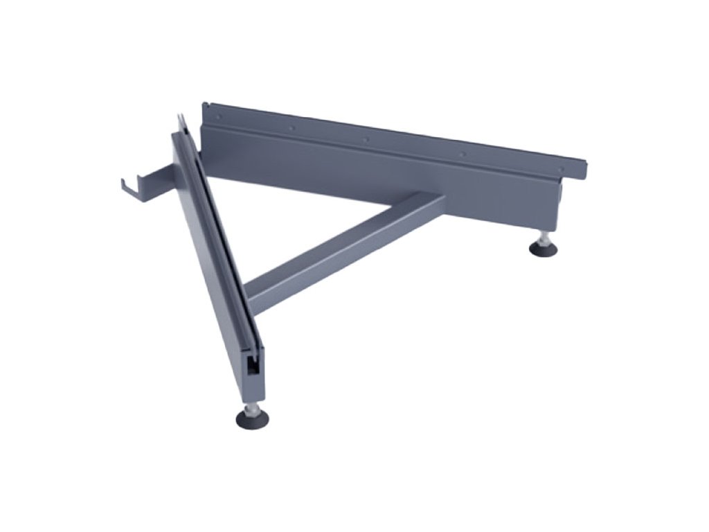Sokl lichoběžníku regálového systému SU5 je svařenec z ocelových komponentů se třemi rektifikačními šrouby M12, určený pro umístění základové police a čela soklu k ukončení oboustranného regálu.