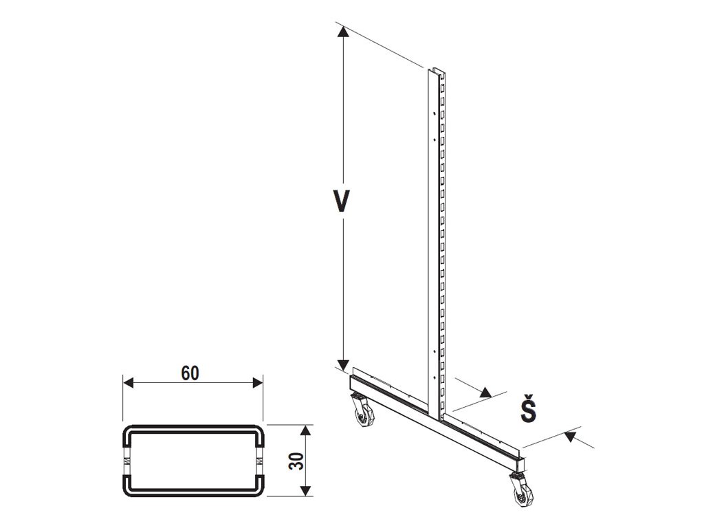 Stojina pojízdné gondoly výška 1831 mm, hloubka 200 mm se stojinou 60x30 mm - pravá. Stojina pojízdné gondoly regálového systému SU5 jednomodulové regálové sestavy, pro vytvoření pojízdného oboustranného regálu. Stojina je uzavřený profil s oboustranným děrováním a otvory pro montáž spojnic stojin. které slouží k zavěšování konzol s policemi, zadních panelů a dalších závěsových prvků. Stojiny tvoří základní nosný prvek u oboustranných pojízdných regálů a každé kolečko je opatřeno brzdou.