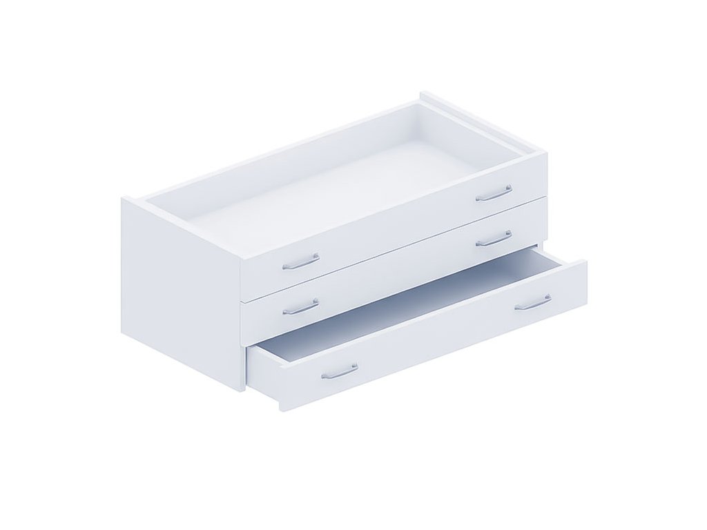 Zásuvková vložka regálová 1000 mm regálového systému SU5 je komplet se třemi zásuvkami a dvěma bočnicemi, jejichž součástí jsou tři páry vodících lišt (maximální zatížení jedné zásuvky je 20 kg). Zásuvková vložka je určená k uložení na konzole nebo nohy (výplně) pro vytvoření regálového zásobníku na modulu prodejního regálu SU5.